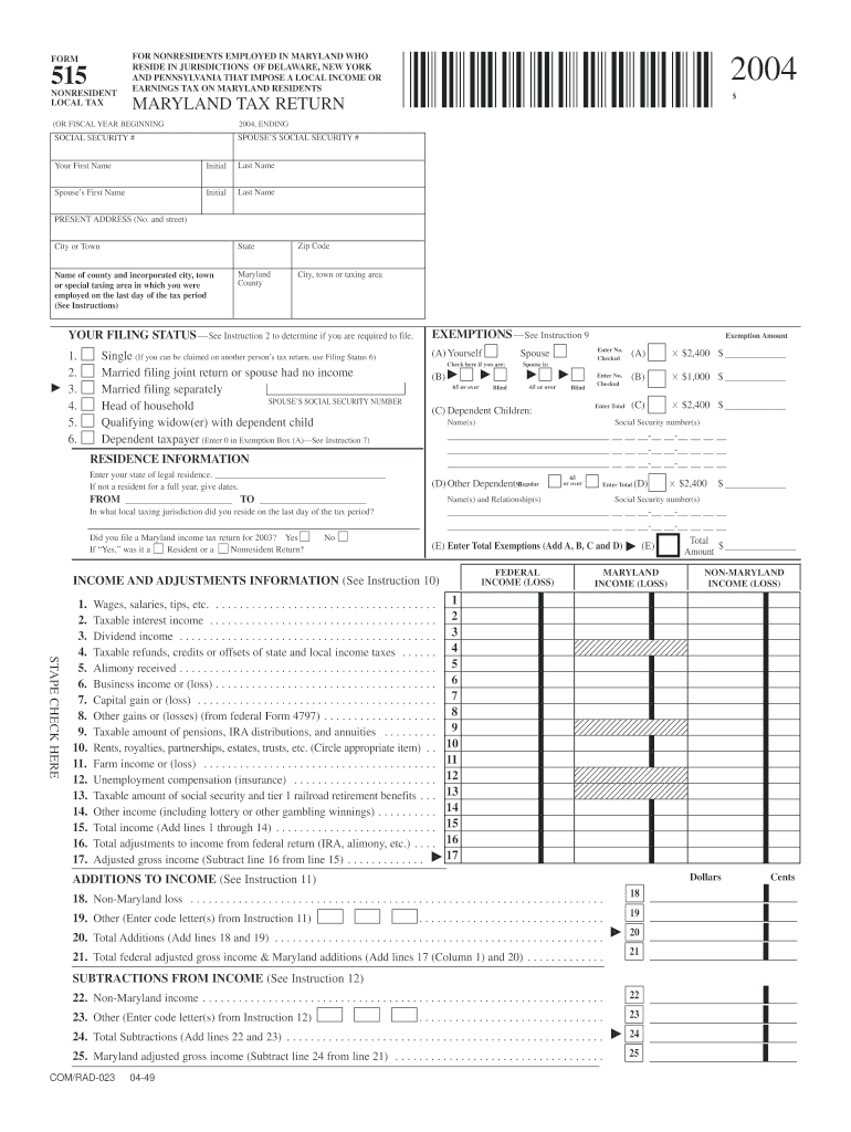 Get the free Maryland Nonresident Local Income Tax Return