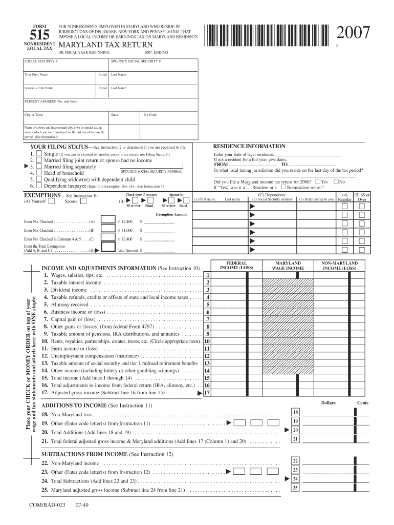 Get the free Maryland Nonresident Local Income Tax Return