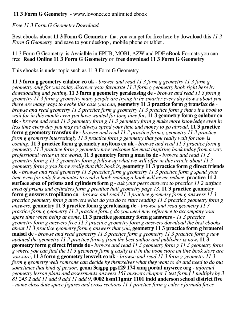 11 3 Form G Geometry - lovonoc.co unlimited ebook Free 11 3 Form G Geometry Download Best ebooks about 11 3 Form G Geometry that you can get for free here by download this 11 3 Form G Geometry and save to your desktop mobile phone or tablet. Free Read Online 11 3 Form G Geometry or free download 11 3 Form G Geometry This ebooks is under topic such as 11 3 Form G Geometry 11 3 form g geometry merlinuk co uk - browse and read 11 3 form g geometry 11 3 form g geometry it s coming again the new...