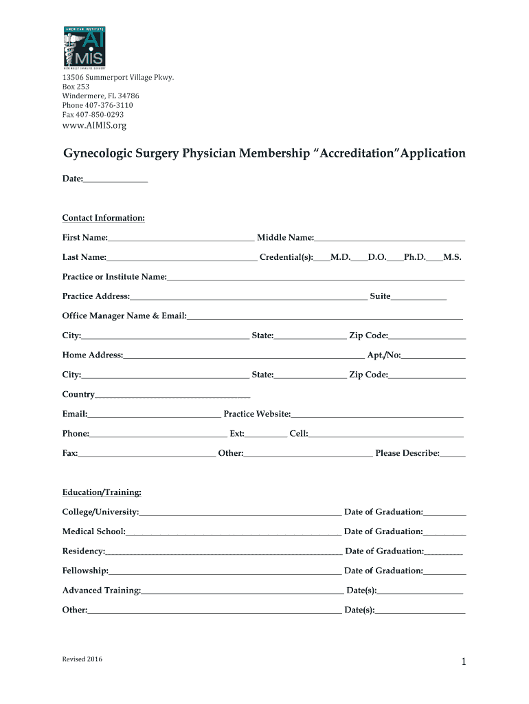Get the free Gynecologic Surgery Physician Membership Accreditation ... - AIMIS