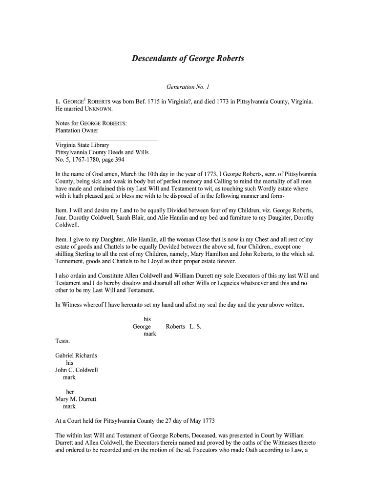 Fill out your descendants of george roberts online with pdfFiller!