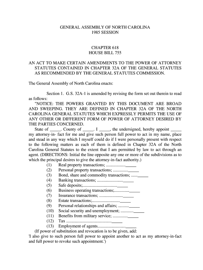 Sec. 3. This act is effective upon ratification. In the General Assembly read three times and ratified this the 5th day of July 1985. My Commission Expires Signature of Notary Public Notary Public Official Seal Sec. 2. G.S. 32A-2 is amended as follows a. G.S. 32A-2 2 is amended on line 9 by deleting the language mortgages subject to deeds of trust and inserting in lieu thereof the language and mortgages and is further amended on line 11 by deleting the words real or after the word any. If...