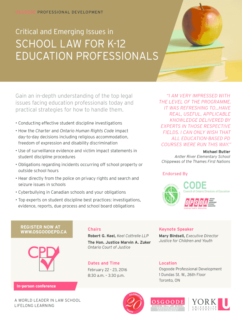 Get the free school law for k-12 education professionals - Osgoode Professional ...