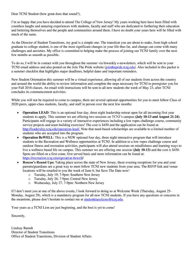 I'm so happy that you have decided to attend The College of New Jersey! My years working here have been filled with