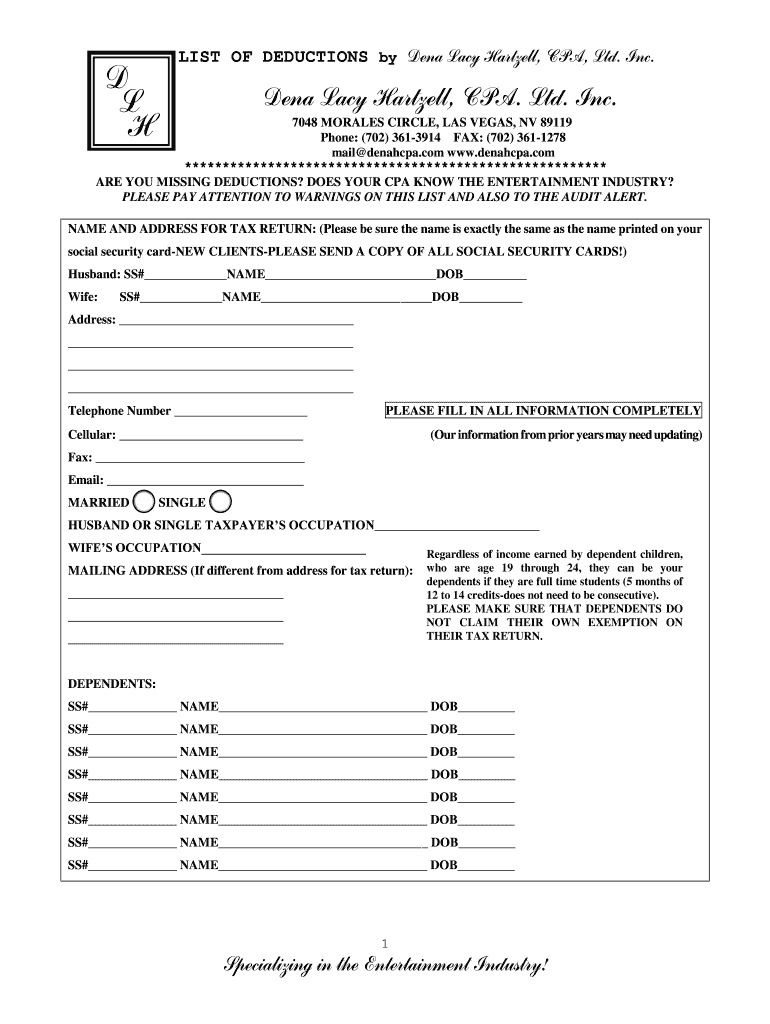 The Tax Deduction Form is a specialized document used by individuals and businesses to list their deductions for tax purposes.