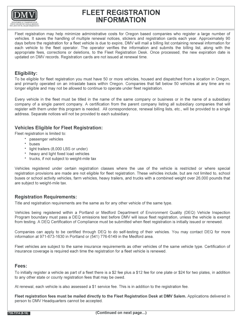 Fleet registration may help minimize administrative costs for Oregon based companies who register many