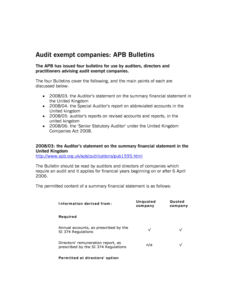 Get the free Audit exempt companies: APB Bulletins
