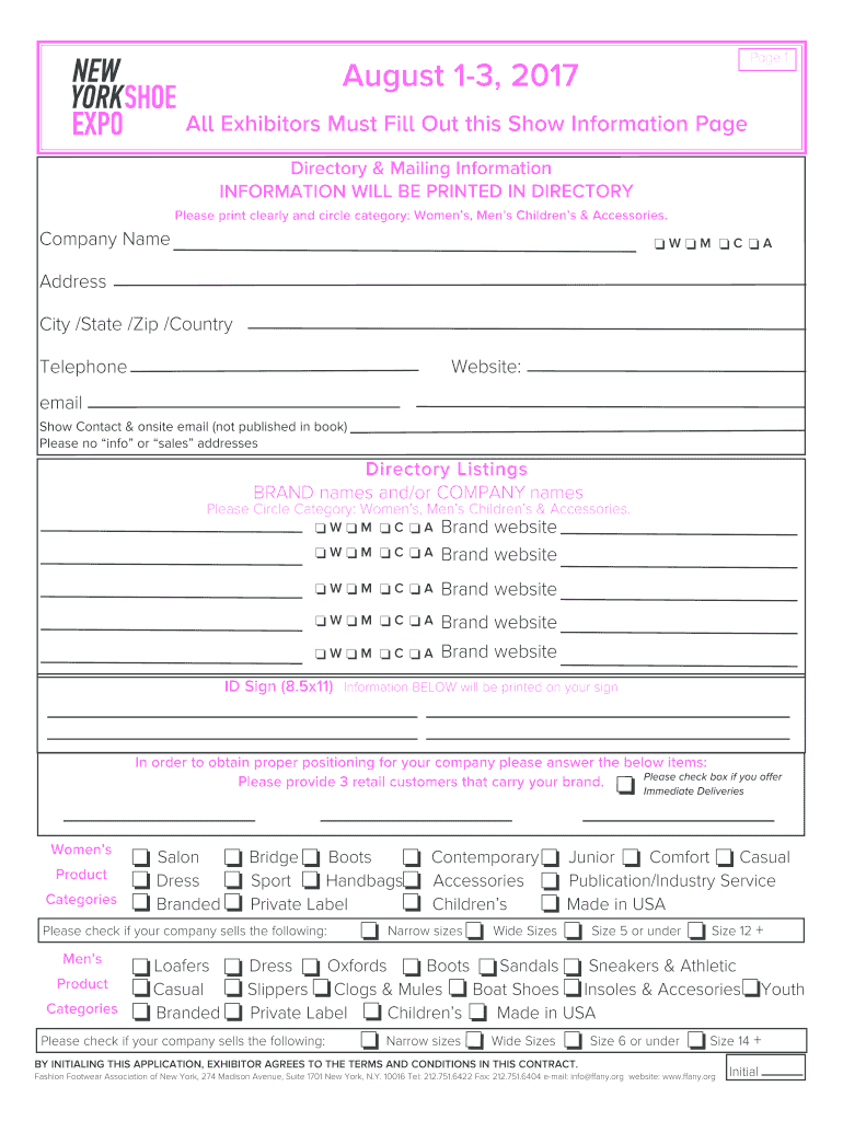 5 ft 44 ft x 19 ft x 8 ft 763 ft2 39 ft x 22 ft x 8 ft 725 ft2 846 ft2 27 ft x 21 ft x 8 ft 493 ft2 1 026 ft2 458 ft2 Ceiling height differs based on chandelier and lighting fixtures. FFANY AD- Please check box if you wish to purchase a full page 6x9 color ad in the FFANY directory. Email high-resolution CMYK PDF/X-1a with full marks and bleeds directly to prein ffany. org with copy to j. 751. 6422 Fax 212. 751. 6404 e-mail info ffany. org website www. ffany. org Initial New York Hilton...