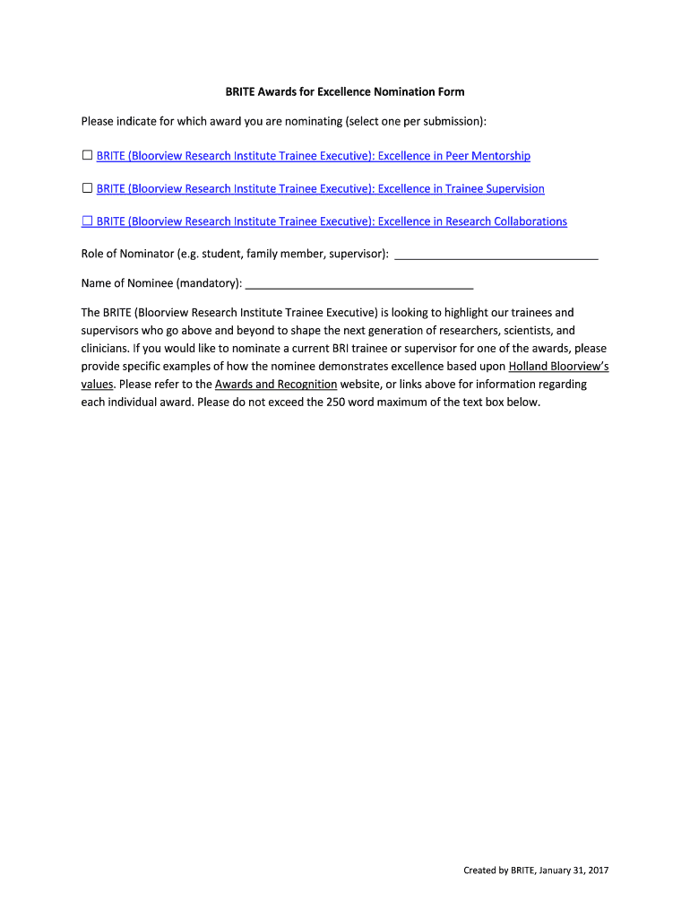 Fill out your brite awards for excellence online with pdfFiller!