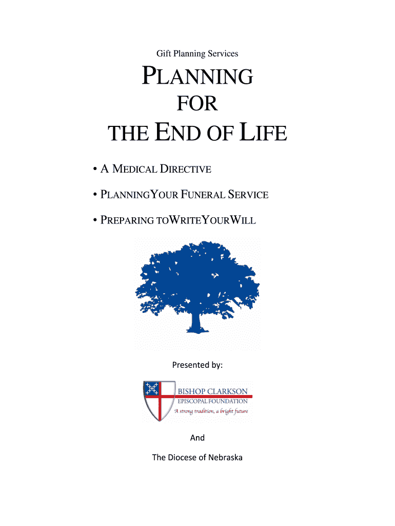 Gift Planning Services PLANNING FOR THE END OF LIFE A MEDICAL DIRECTIVE PLANNINGYOUR FUNERAL SERVICE PREPARING TOWRITEYOURWILL Presented by: And The Diocese of Nebraska CONTENTS General Information