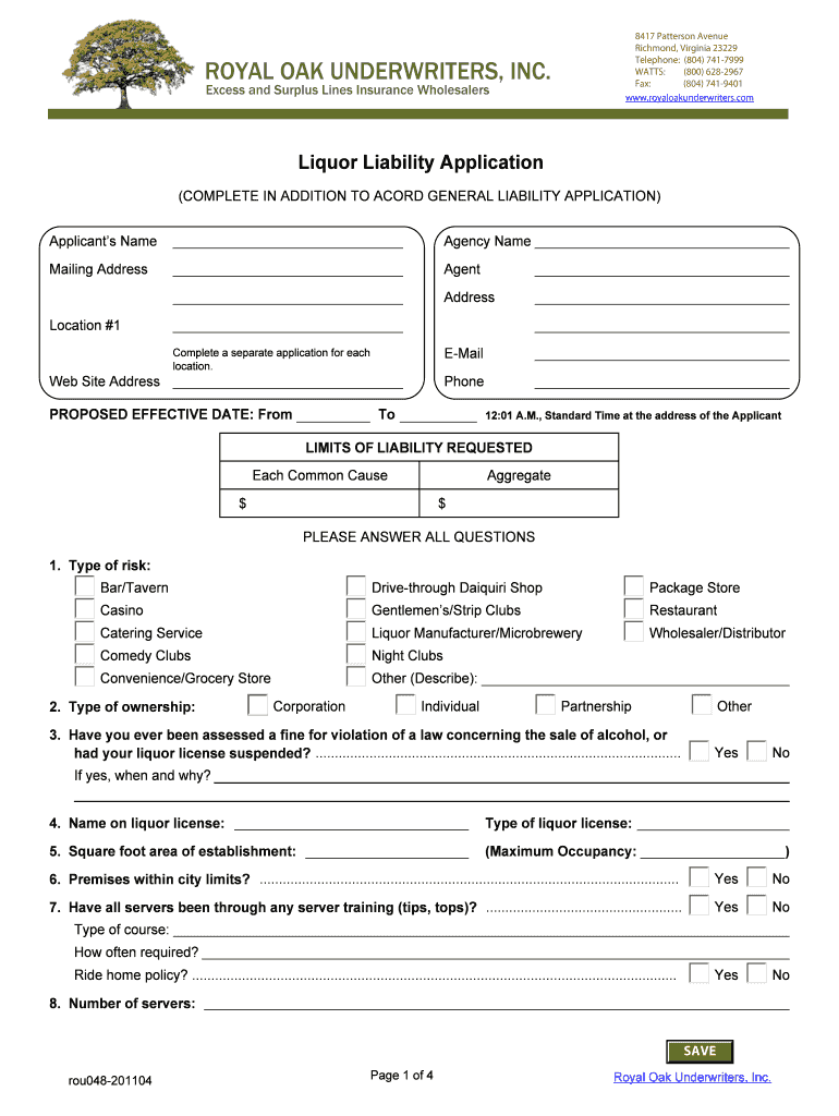 Get the free Liquor Liability Application