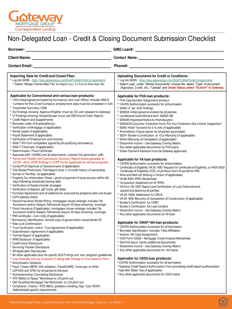 Get the free Non-Delegated Loan - Credit & Closing Document Submission Checklist