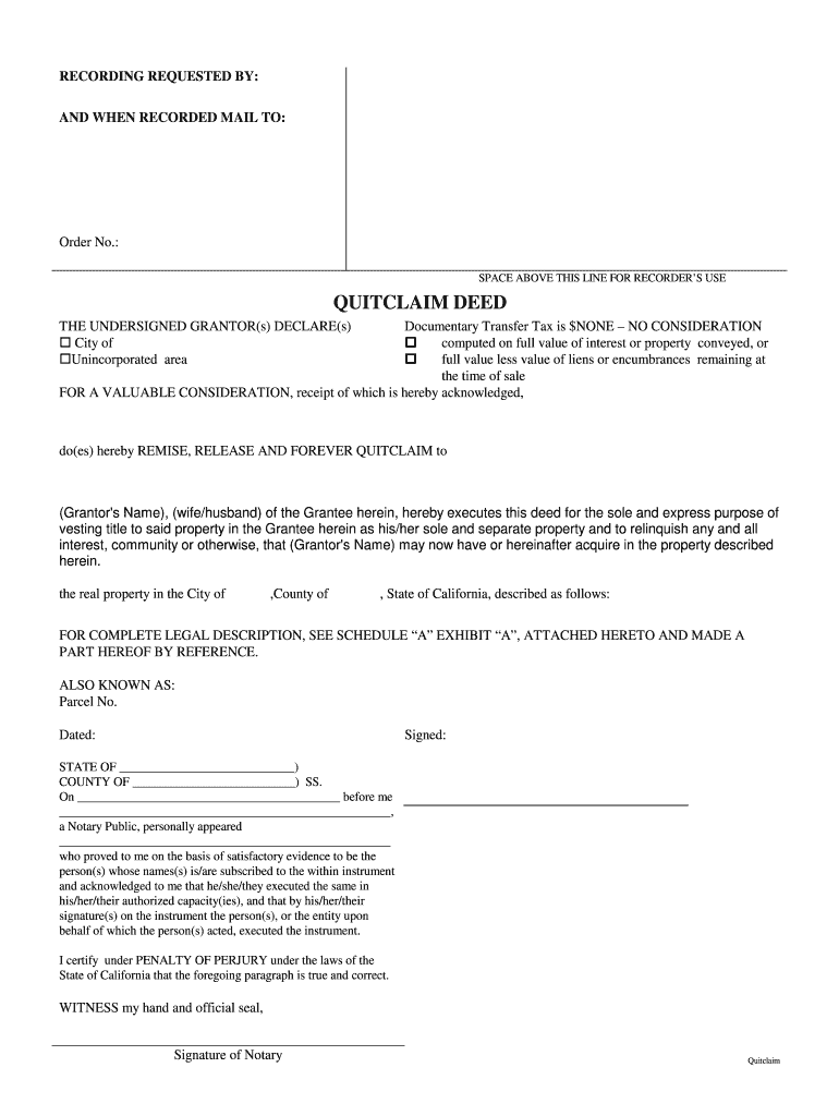 Get the free California Quitclaim Deed