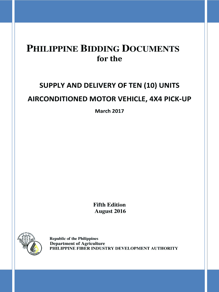 Bidding is restricted to Filipino citizens/sole proprietorships partnerships or organizations with at least sixty percent 60 interest or outstanding capital stock belonging to citizens of the Philippines and to citizens or organizations of a country the laws or regulations of which grant similar rights or privileges to Filipino citizens pursuant to RA 5183. Interested bidders may obtain further information from the PhilFIDA Bids and Awards Committee BAC Secretariat and inspect the Bidding...