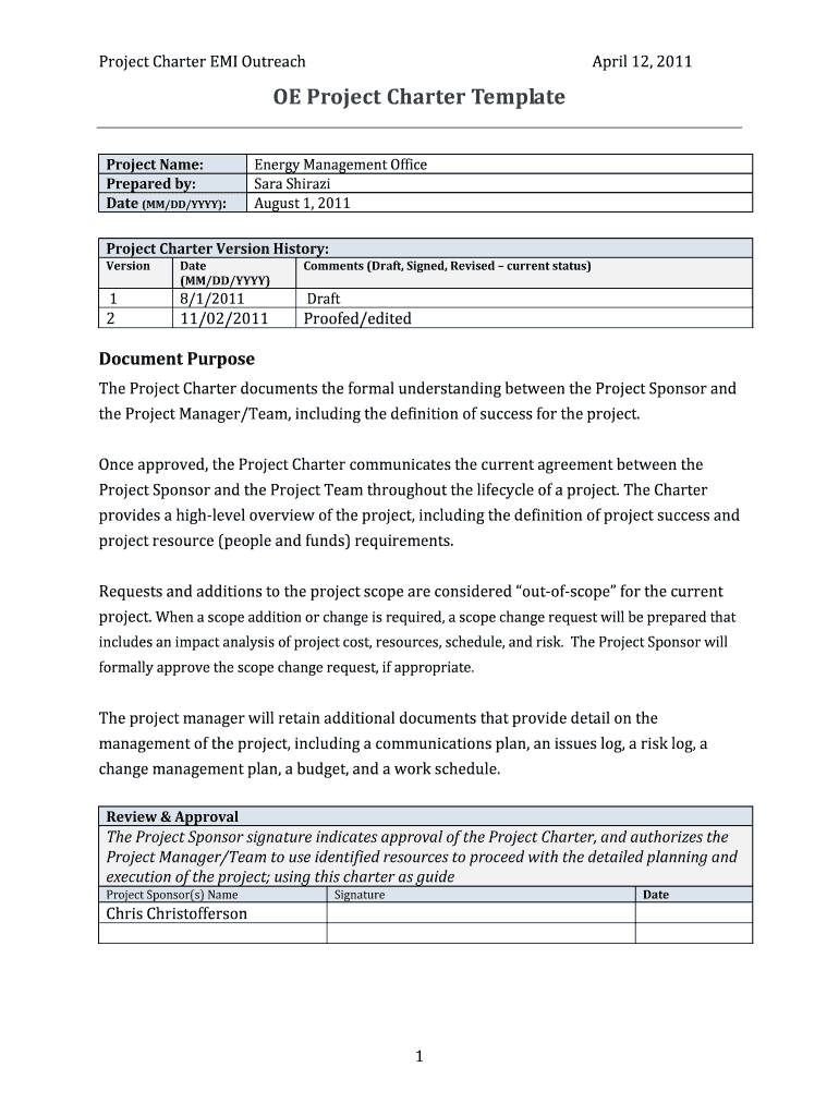 How to fill out project charter emi outreach