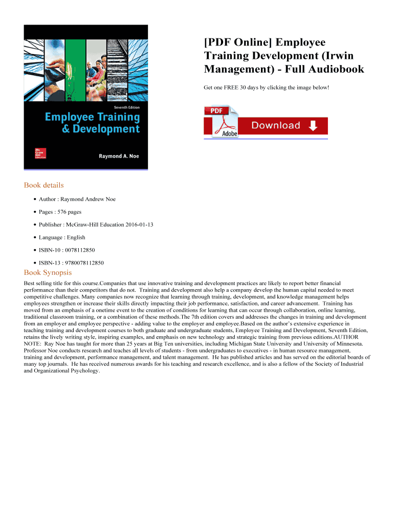 Get the free Online PDF Employee Training Development (Irwin Management), Read PDF Employee Train...