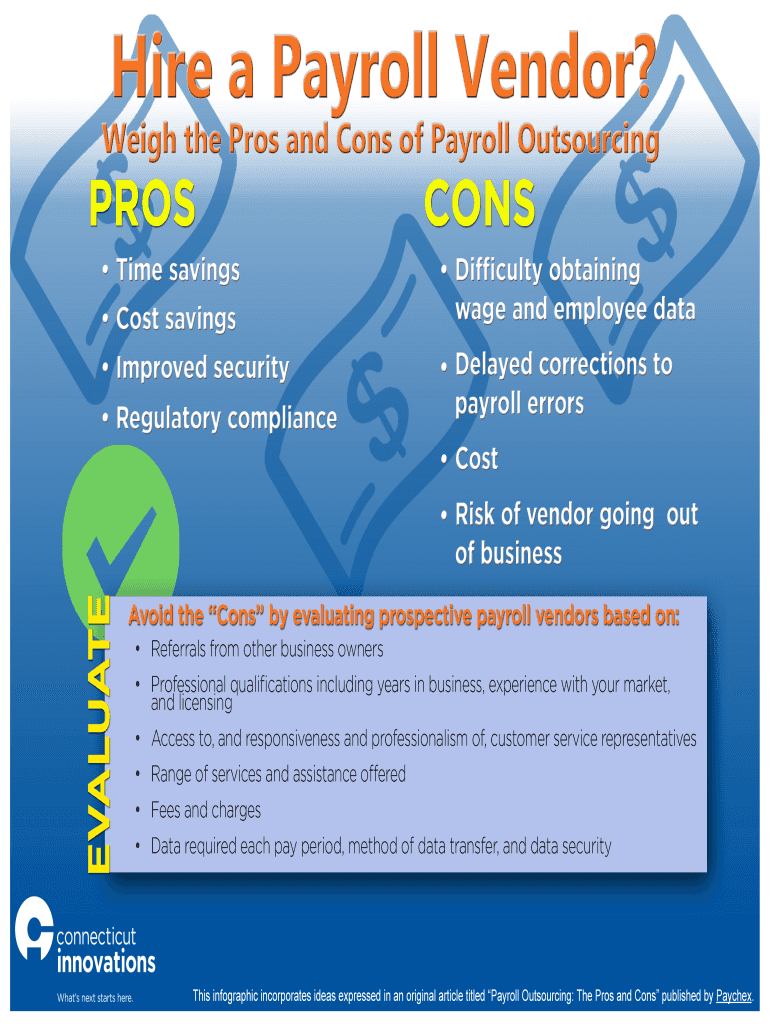 This infographic incorporates ideas expressed in an original article titled Payroll Outsourcing The Pros and Cons published by Paychex.