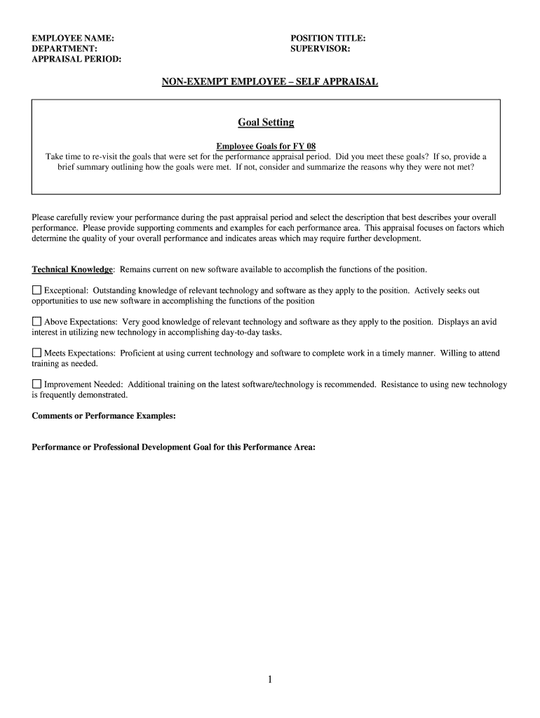 How to fill out non-exempt employee self appraisal
