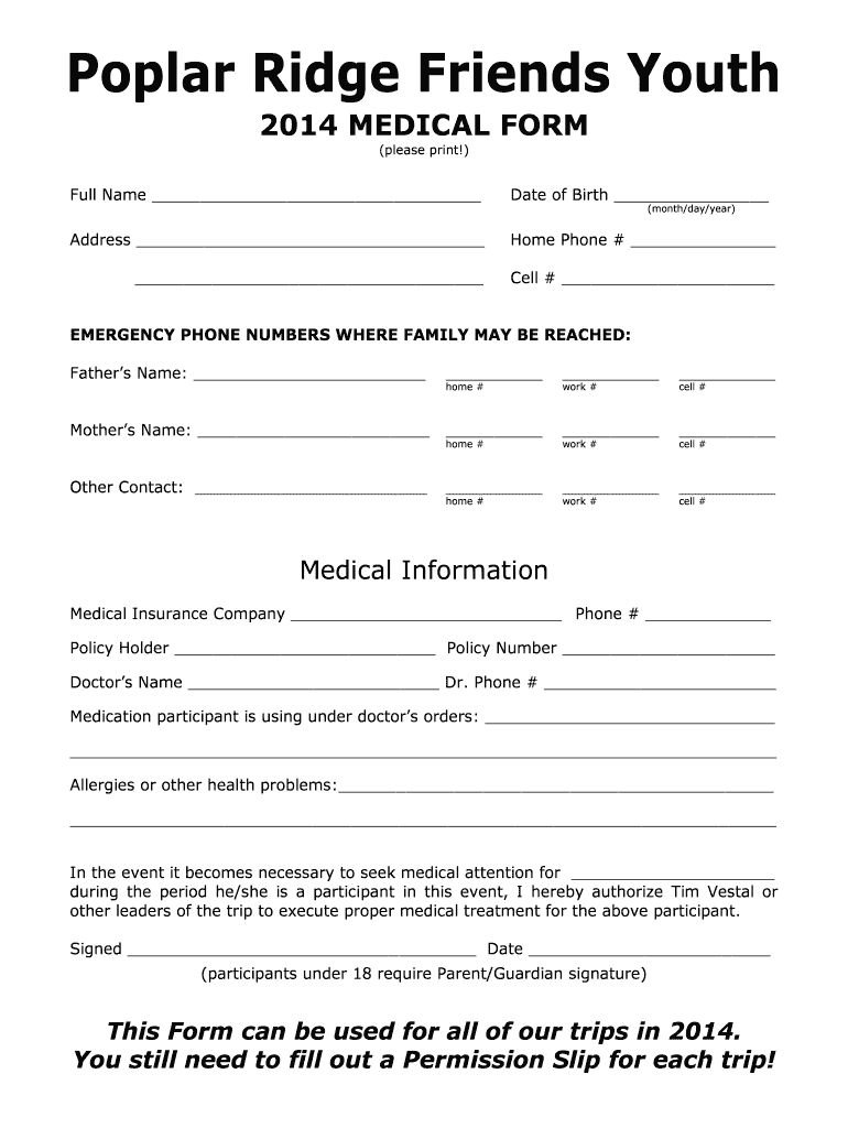 Edit your 2014 medical form form online