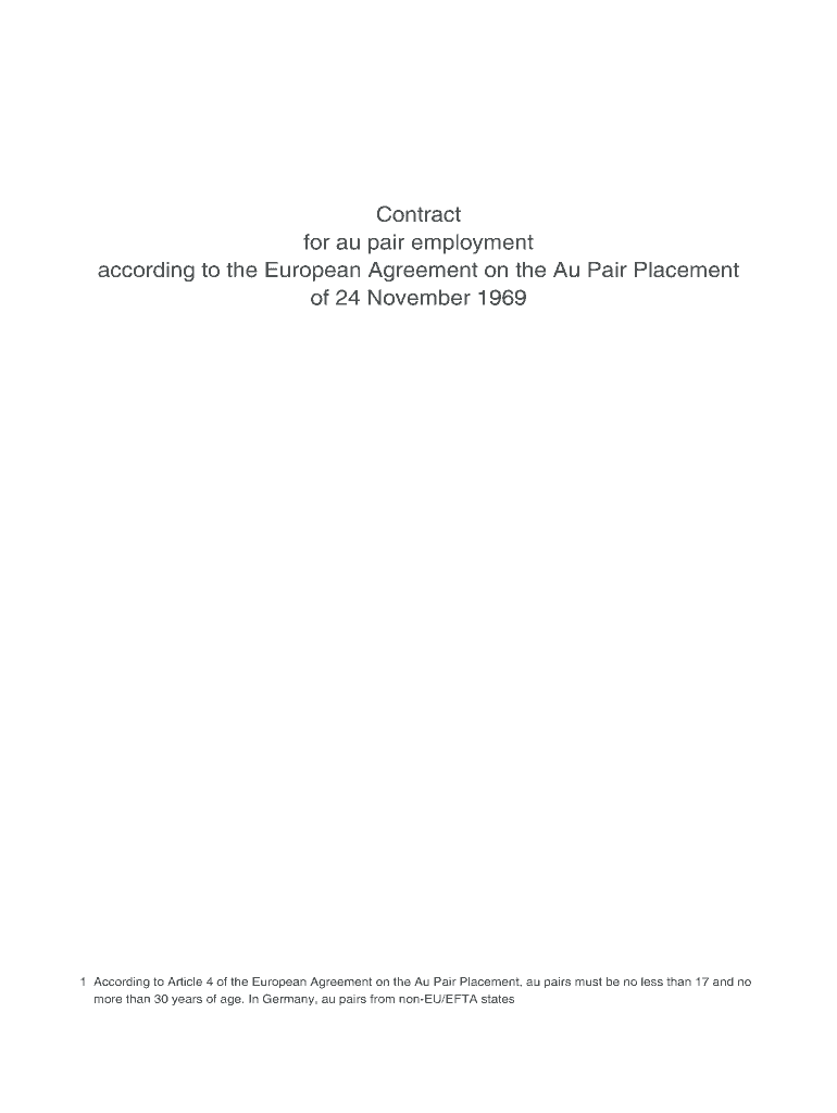 The Au Pair Employment Contract is a legal document used by host families and au pairs to formalize the terms of employment between them.