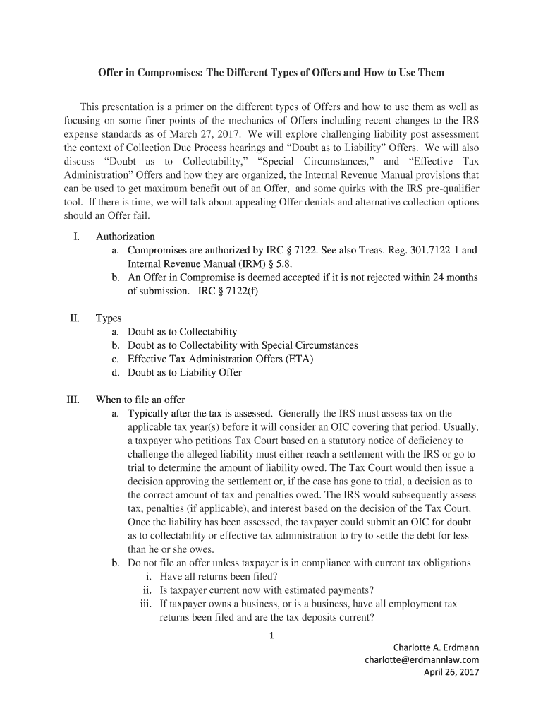 Get the free Offer in Compromises: The Different Types of Offers and How to Use Them