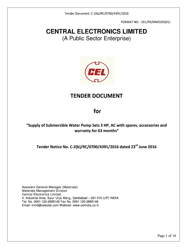 In case of split of quantity in three quantity will be awarded to the L2 approved vendor and L3 approved vendors in the ratio of L2 s quantity L3 s quantity subject to acceptance of L1 rate by L2 and L3 vendor. Demand Draft/FDR/RTGS details towards Earnest Money Deposit/copy of NSIC/DIC certificate should be enclosed along with bid ii. Letter of Credit LC will be opened by CEL for 45 days usance from the date of consignment note/LWB. 9. Delivery FOR CEL Sahibabad. 10. CEL will place PO for...