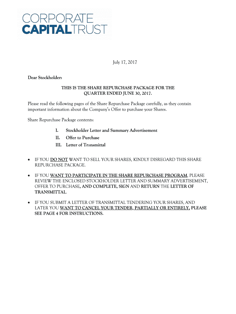 QUARTER ENDED JUNE 30, 2017. Please read the following pages of the Share Repurchase Package carefully, as they contain