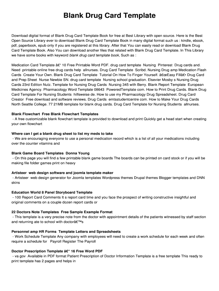 Drug Cards emtsstudentcentre com. How to Make Your Drug Cards North Seattle College. 77 21MB template for blank drug cards. In This Library we have some books with keyword blank drug card template book Such as Medication Card Template 10 Free Printable Word PDF. drug card template Nursing Pinterest Drug cards and. Here is the Best Open Source Library ever to download Blank Drug Card Template Book in many digital format such us kindle ebook pdf paperbook epub only if you are registered at...