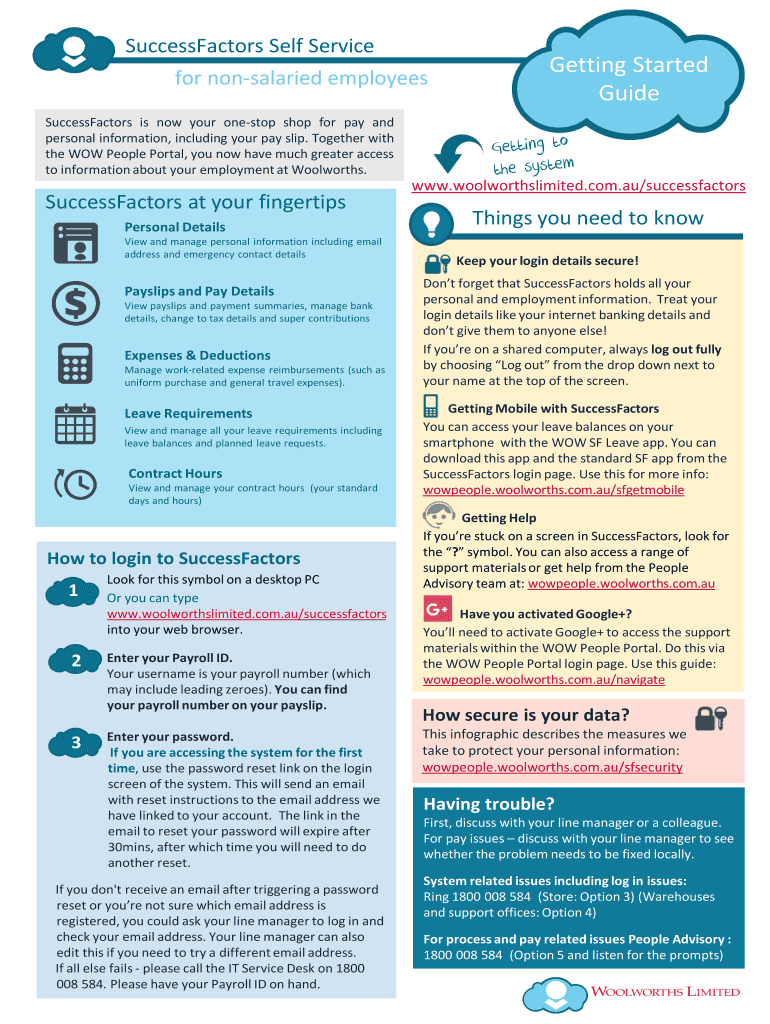 Employees must report personal information, such as contact details, emergency contacts, benefits selections, and performance goals on SuccessFactors Self Service.