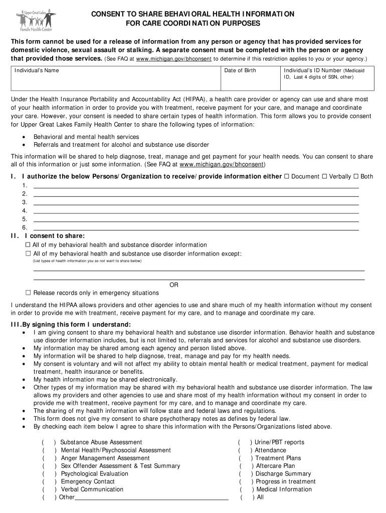 CONSENT TO SHARE BEHAVIORAL HEALTH INFORMATION
