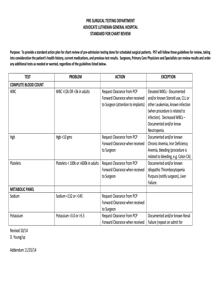 Medical staff, surgeons, and other healthcare professionals involved in the pre-surgical process are required to file pre surgical testing department.