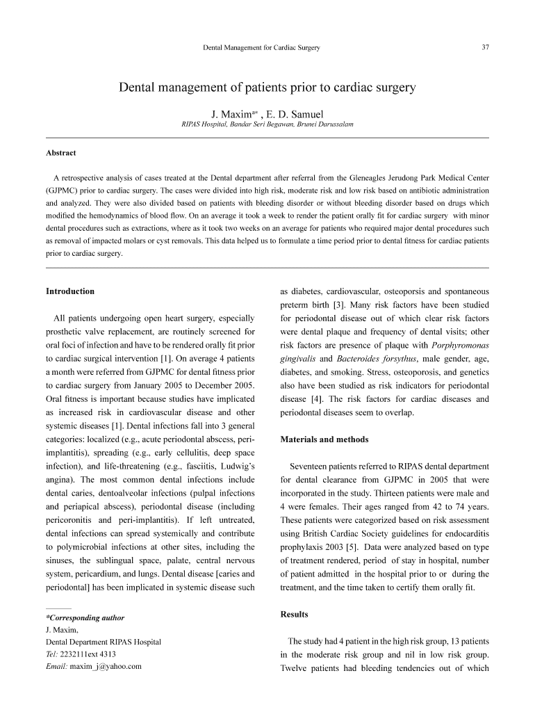 References 1. Janket SJ. 2004. Asymptotic dental Score and Prevalent Coronary Heart. American Heart Assn 109 1095-1100 3. Sirois DA Atahzadeh M. 2001. Valvular heart disease. Oral Surg OralMed Oral Pahol Oral Radiol Endod. Genco RJ. 1996. Current review of risk factors for 4. Soder PO Nowak J. 2005. Early Carotid Atherosclerosis in Subjects with Periodontal Diseases. The most common dental infections include dental caries dentoalveolar infections pulpal infections and periapical abscess...