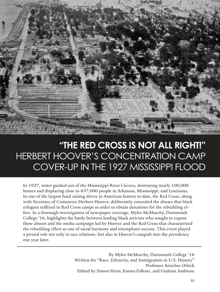 Washington. Moton Robert. Robert Moton s First Report. Alabama 1927. Web. PBS.. Robert Moton s Second Report. NYT. May 29 1927. 48. Harrington J Winston. DENY FOOD TO FLOOD SUFFERERS IN MISSISSIPPI. Defender. June 4 1927. Web. PBS. June 13 1927. 63. Ida B. Wells SOUTH BACKS DOWN AFTER PROBE LOOMS. Defender. June 25 1927. Moton Robert Moton s Second Report. 1927. Web. PBS. 97. Barry 389-91. 99. Ibid. 58. 100. Ibid. 14. 101. 81. Hoover Hero of Flooded South. NYT. July 31 1927 Flood Relief...