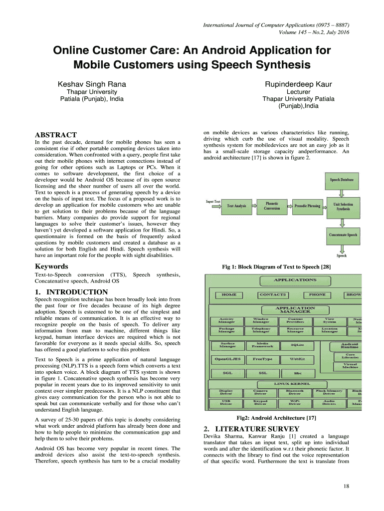 3 Shailesh S. Singla and Nilesh M. Patil Speech Synthesis Using Android. International Journal of Innovative Research and Development 2014. Sangle Shailesh S. Nilesh M. Patil 3 created a social domain based application. They developed a system and combines voice synthesis with skype. K Implementation of malayalam text to speech using 23 Yu Ronald Tong Lai Yu and Ihab Zbib. Animating TTS Messages in Android using OpenSource Tools. ACM 2012. 14 Sankar Mukherjee and Shyamal Kumar Das Mandal A...
