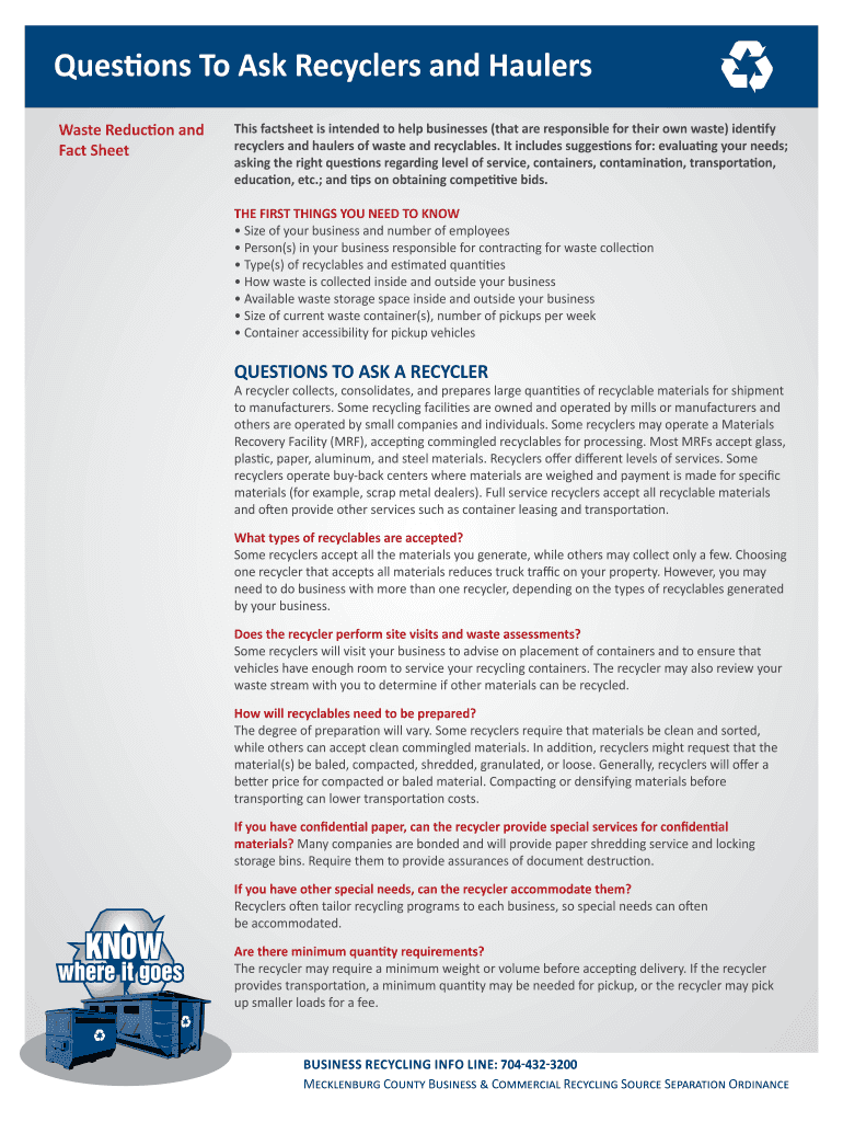 Get the free Questions To Ask Recyclers and Haulers