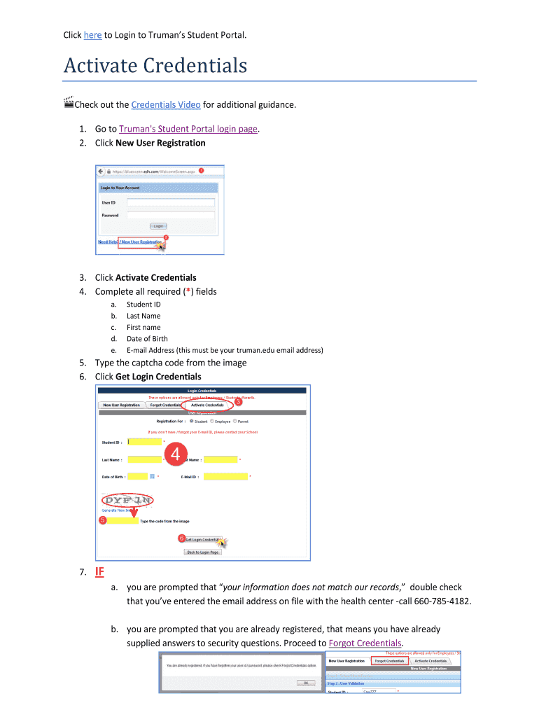 Click here to Login to Truman's Student Portal. Activate CredentialsCheck out the Credentials Video for additional guidance.