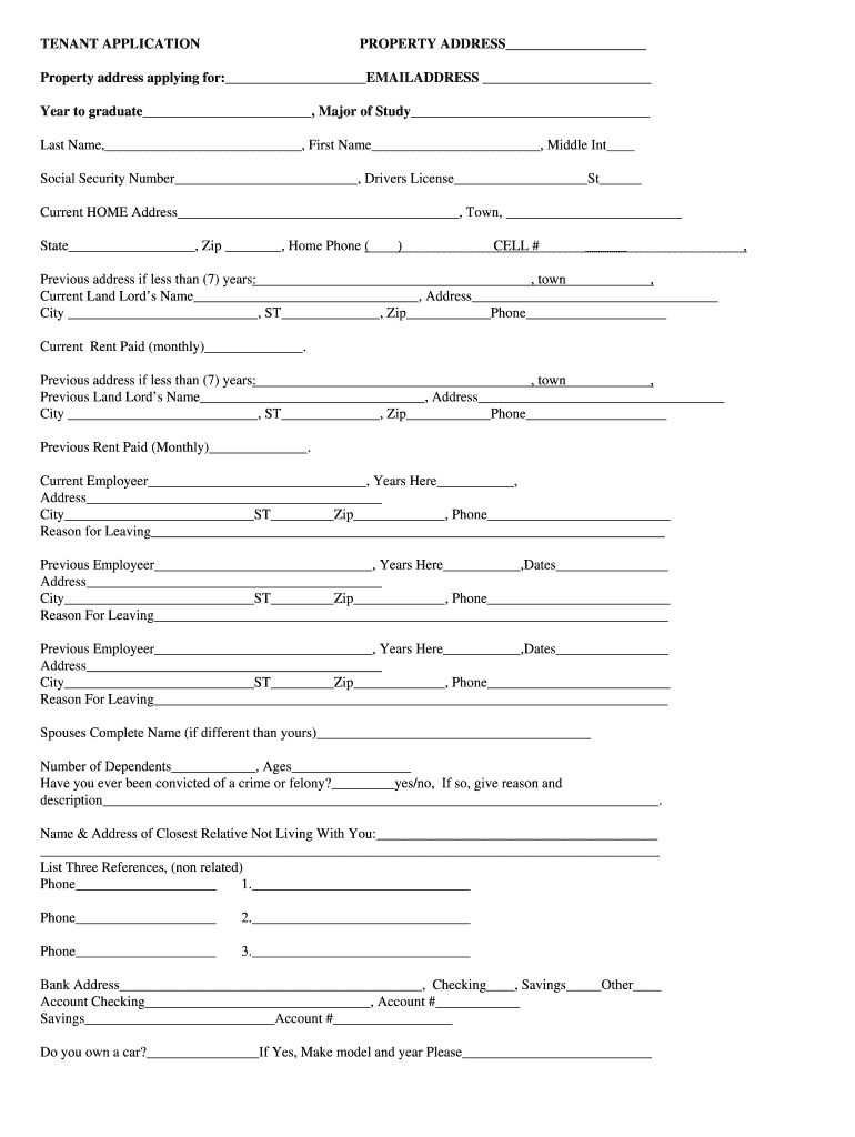 Get the free Tenant Application Form