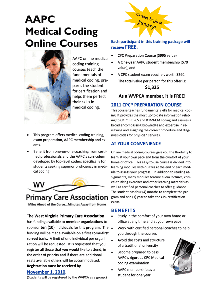 APC Medical Coding Online Courses CLAS SE s begin in Jane an r y! Each participant in this training package will receive FREE: CPC Preparation Course ($995 value) APC online medical A One?year APC