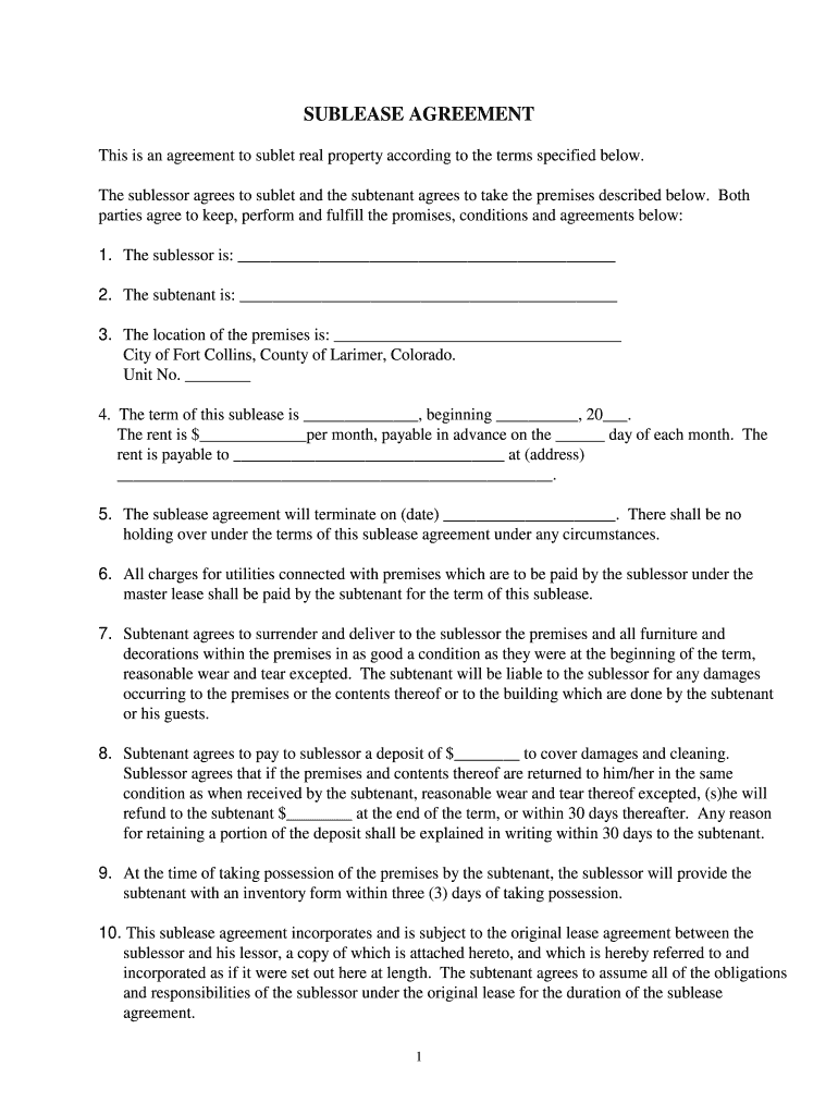 Get the free Colorado Sublease Agreement