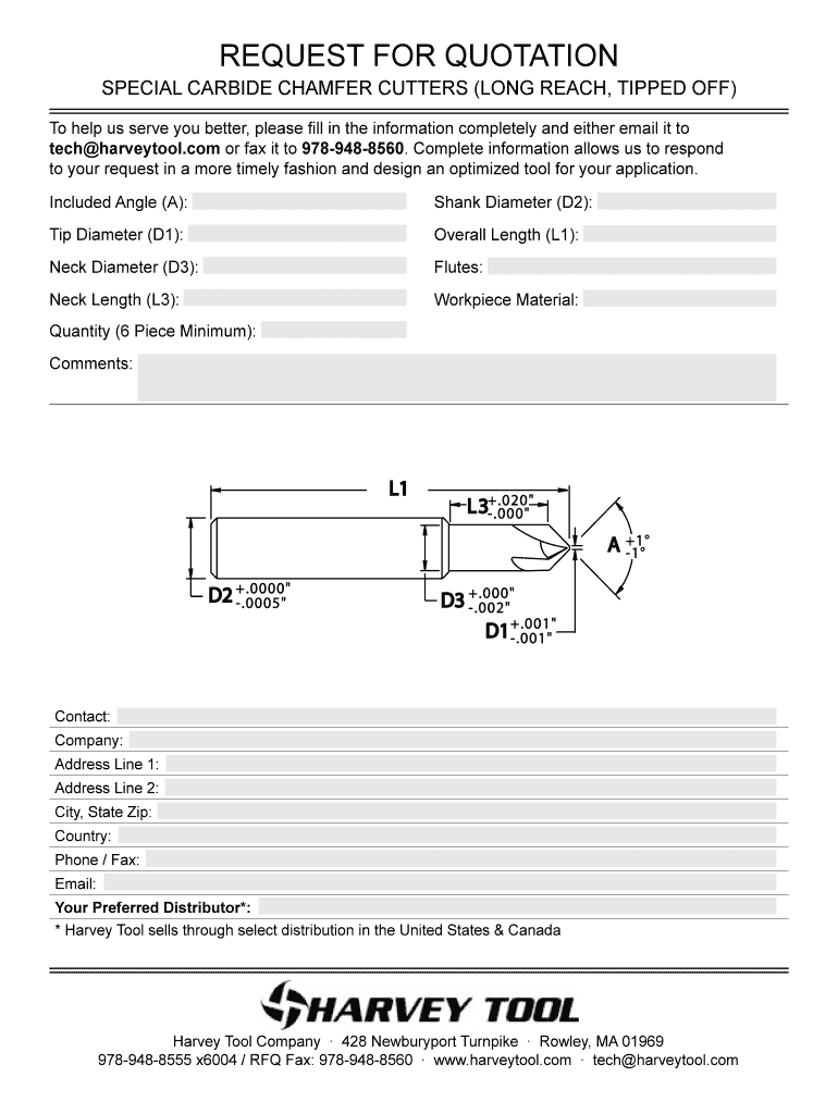 Get the free Request for Quotation for Carbide Chamfer Cutters