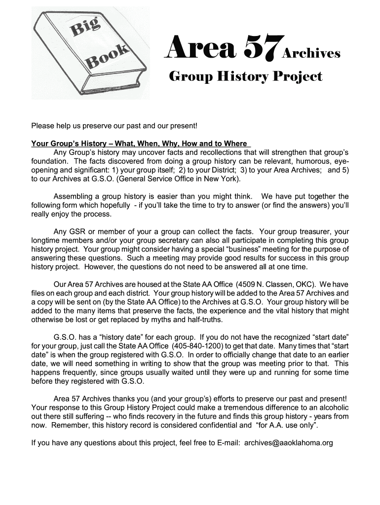 Get the free Area 57Archives Group History Project - AA Oklahoma