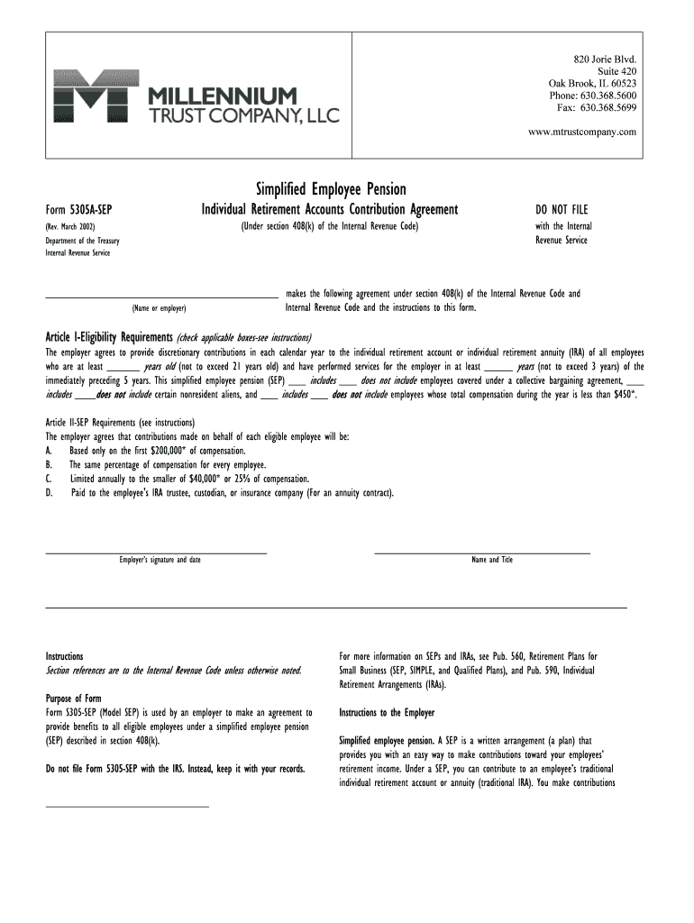 This form serves multiple purposes in retirement planning. Firstly, it provides a structured mechanism for employers to establish pension contributions on behalf of eligible employees. Some significant benefits associated with using the Simplified Employee Pension Form 5305A-SEP include: