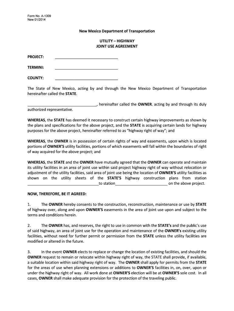 This agreement shall inure to the benefit of and be binding upon the successors and assigns of both parties. IN WITNESS WHEREOF the parties hereto have executed this agreement by their respective duly authorized officials. 4. 2 NMAC. Both parties shall utilize said area of joint use in such a manner as not to unreasonably interfere with the rights of the other party. Nothing herein contained shall be construed as a release or waiver of any claim or compensation for damages which the OWNER or...