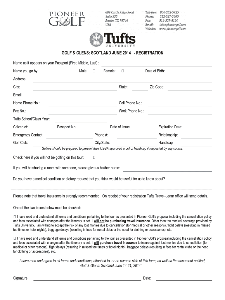 GOLF & GLENS: SCOTLAND JUNE 2014 REGISTRATION Name as it appears on your Passport (First, Middle, Last) : Name you go by: Male: Female: Date of Birth: Address: City: State: Zip Code: Email: Home Phone