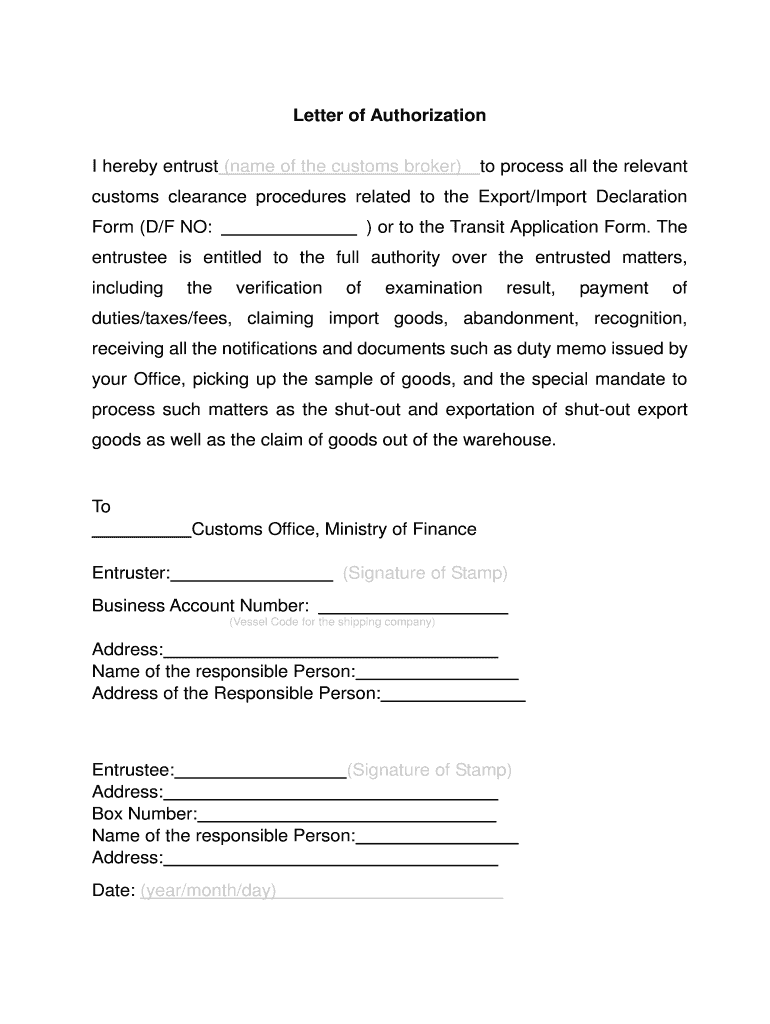 I hereby entrust (name of the customs broker)to process all the relevant customs clearance procedures related to the Export/Import Declaration