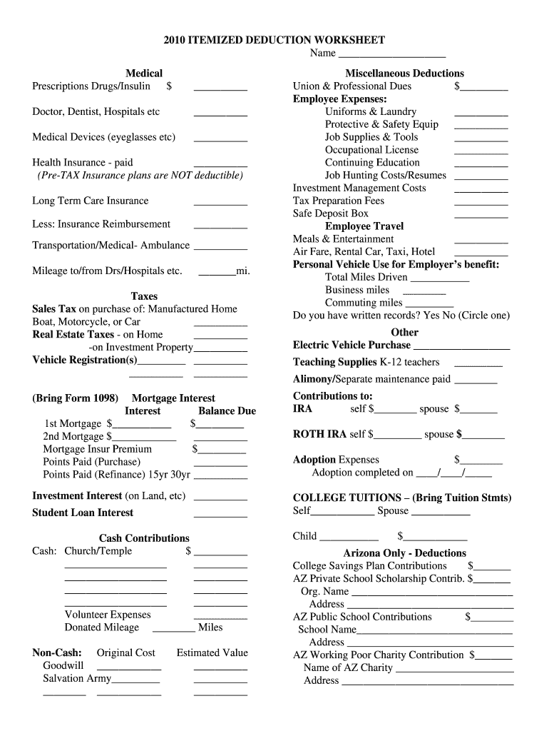Get the free 2010 Itemized Deduction Worksheet