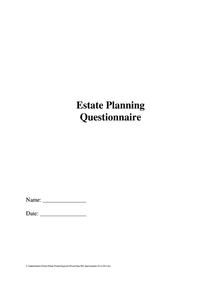 The Estate Planning Questionnaire should be completed by individuals looking to create or update their estate plans, including couples, parents, and individuals with significant assets.