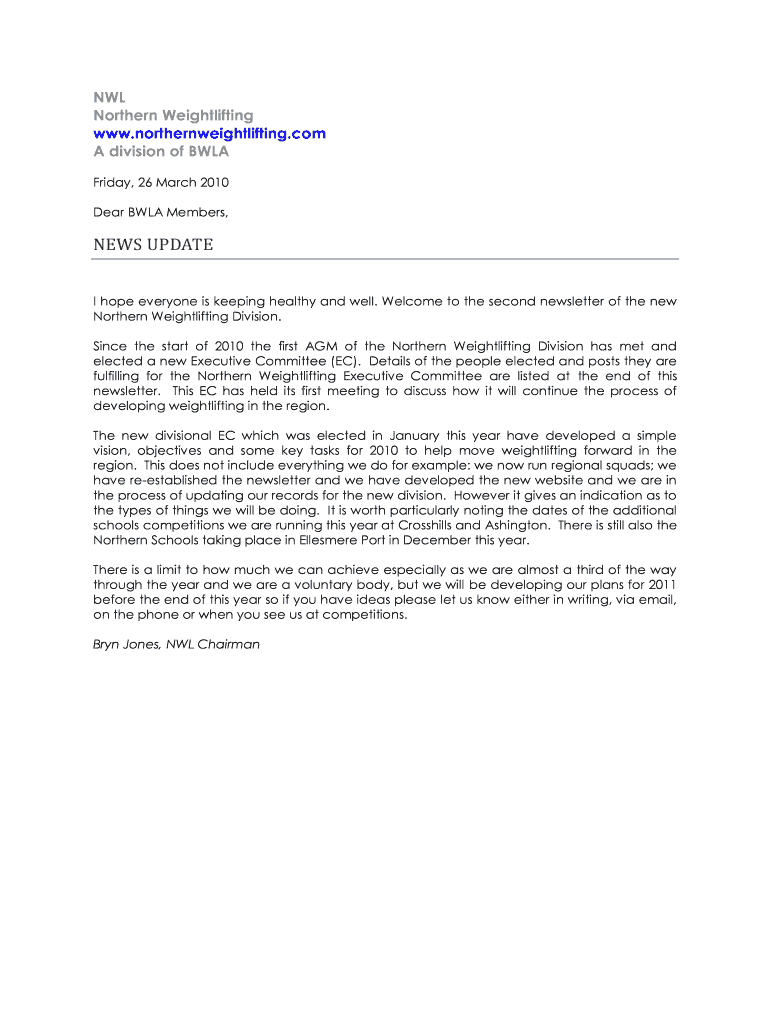 Level One Assistant Club Coach Saturday 3rd Sunday 4th July at Crossfit Manchester Level Two Club Coach Saturday 6th Sunday 7th November Part 1 Saturday 4th Sunday 5th December Part 2. E Halstead NWL Weightlifting Secretary NORTHERN WEIGHTLIFTING EXECUTIVE COMMITTEE Chairman Treasurer Bryn Jones Email brynjones712 btinternet. This was very well attended again with another good age mix with juniors and school lifters through to masters lifters and some very impressive lifting under the...