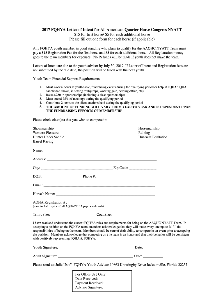 Get the free 2017 FQHYA Letter of Intent for All American Quarter Horse Congress NYATT