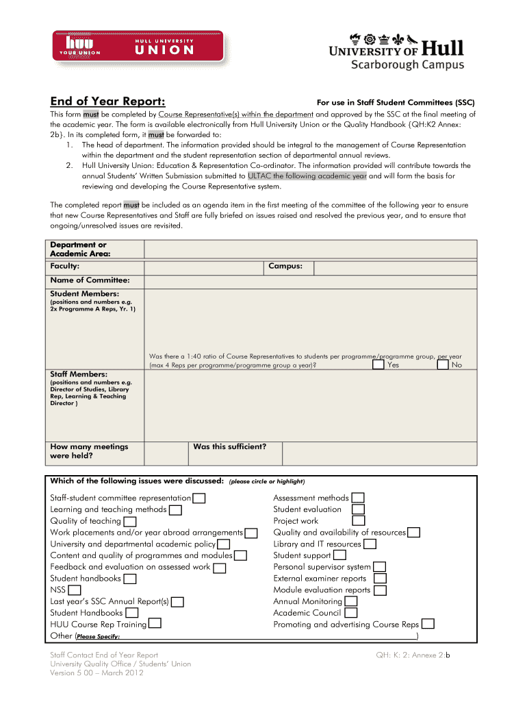 Get the free BEnd of Yearb Report - Scarborough - University of Hull - www2 hull ac